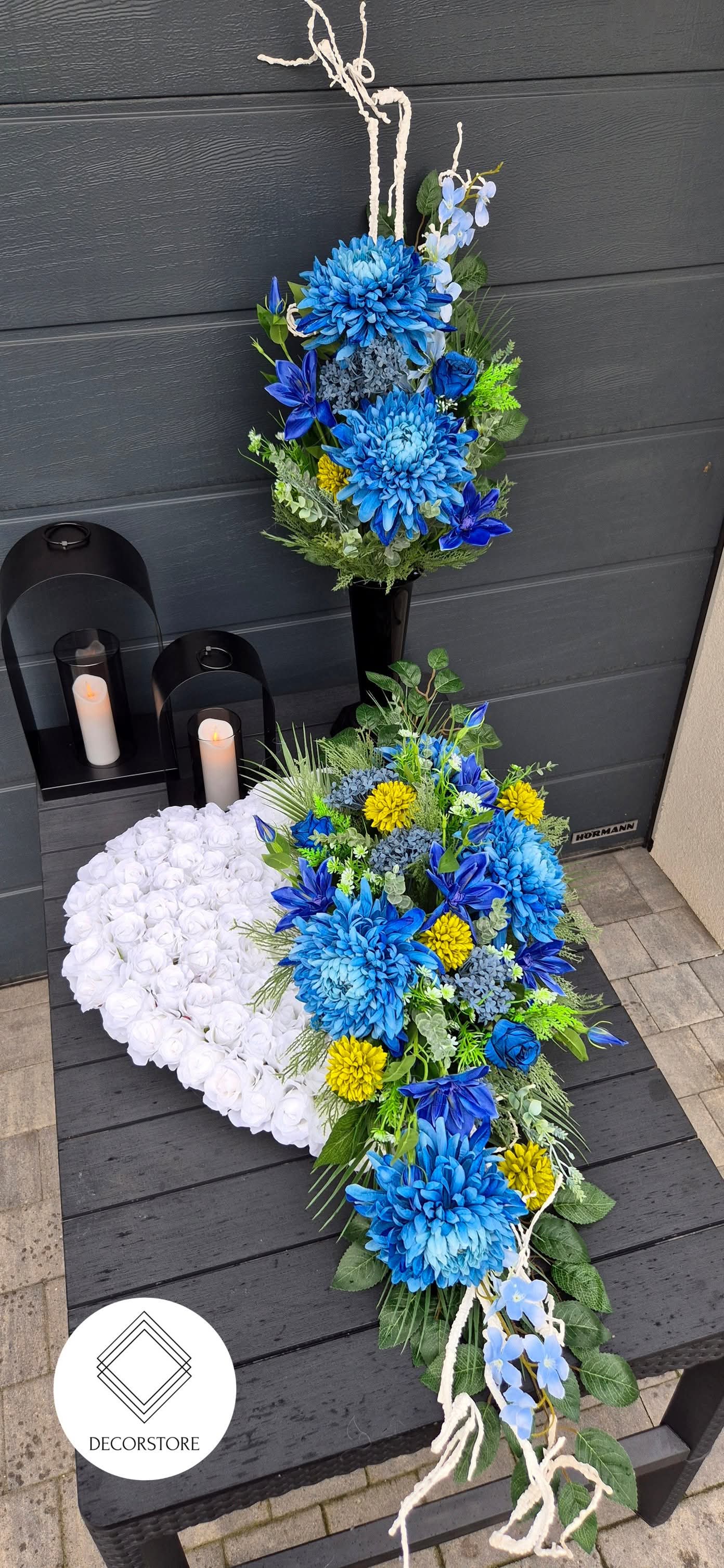 Kompozycja nagrobna Serce – niebieska