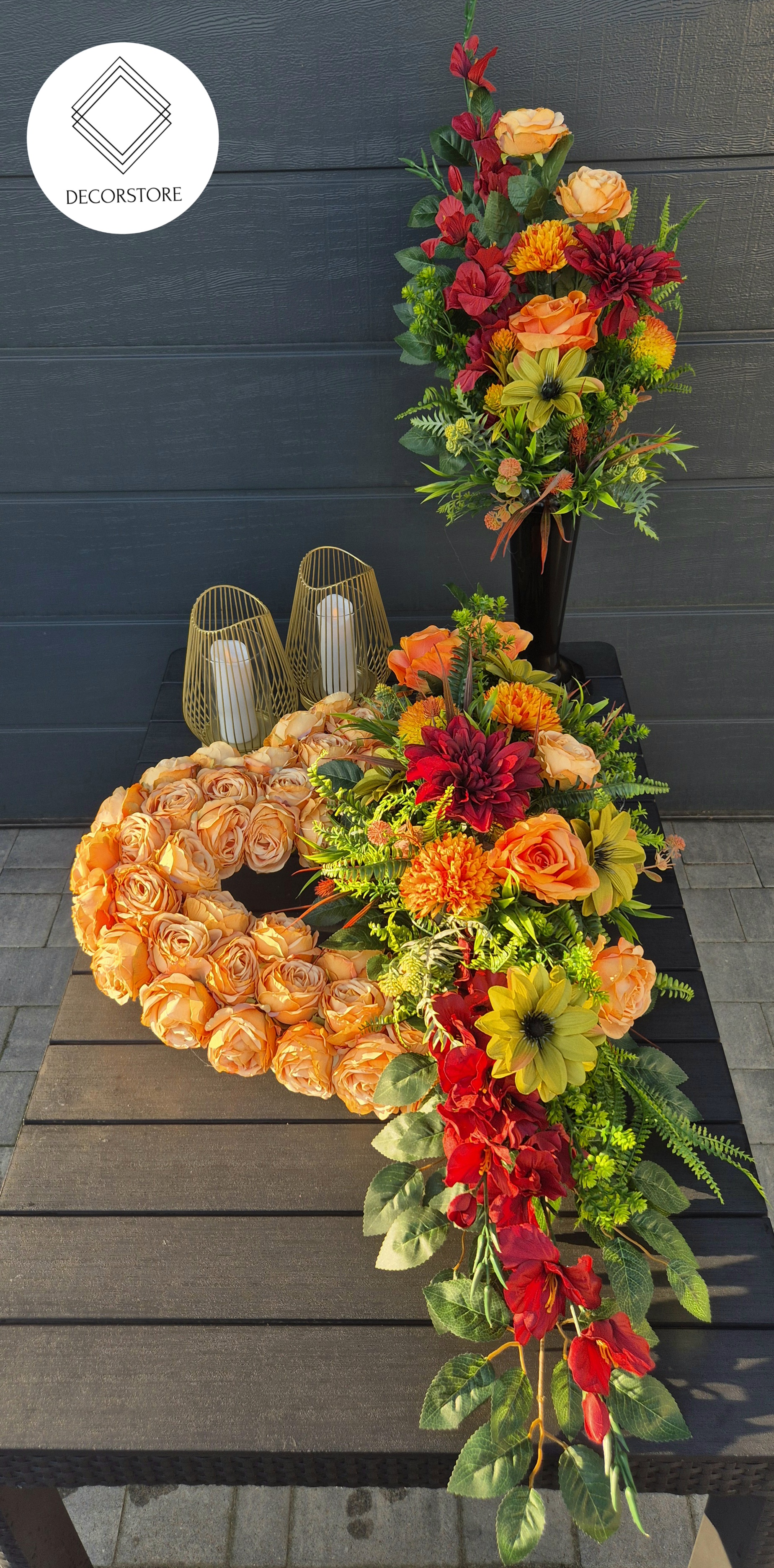 Kompozycja nagrobna Serce zgaszony pomarańcz
